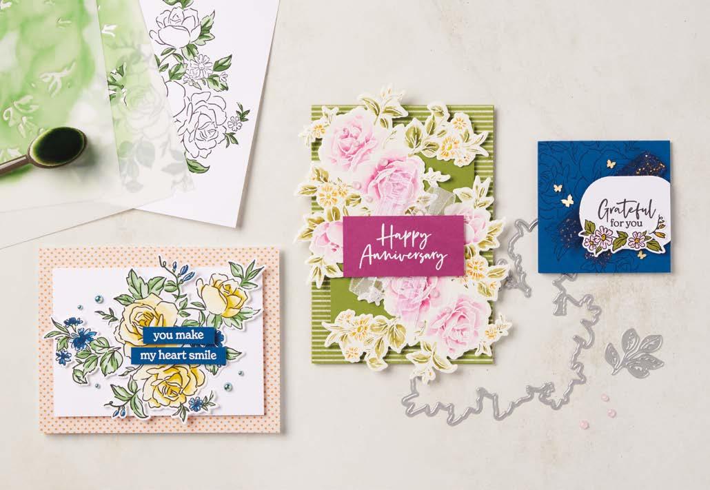 The contents of this catalogue are protected by international trademark and copyright law and treaties as well as registrations with the EUIPO, UKIPO and individual Member States. Reproduction of the catalogue or any portion thereof is strictly prohibited. Purchasers of Stampin’ Up! products are authorised to sell hand-stamped artwork made with our copyrighted designs only in accordance with Stampin’ Up!’s Angel Policy, a copy of which can be found on the Stampin’ Up! website at stampinup.uk/ angel-policy, stampinup.ie/angel-policy, stampinup.nl/angel-beleid or stampinup.be/angel-beleid or obtained from a Stampin’ Up! demonstrator. Permission is not granted to mechanically reproduce stamped images.