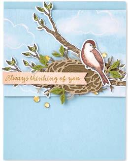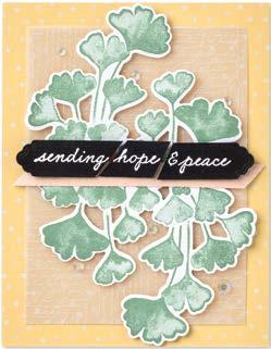 Create the look you see here by piercing the stamped background image, then fussy cut different elements for a layered effect. See more background stamps (p. 28).