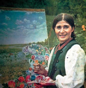 у природи, а найбільшою її пристрастю стали квіти. Одна з кращих картин — «Квіти за тином» (1935). Кожна квітка в цьому шедеврі — частинка цілого і водночас одне-єдине у своїй унікальності творіння. Вражає багатством й кольорова палітра твору. Художниця ненав’язливо і проникливо оспівувала працю людини на