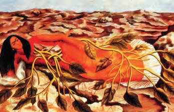 У центрі композиції, поміж антилоп і людей, виділяється велика фігура жінки, написана білою, чорною і коричневою фарбами. В одній руці вона тримає лук і стріли, а в іншій — схожу на лотос квітку.