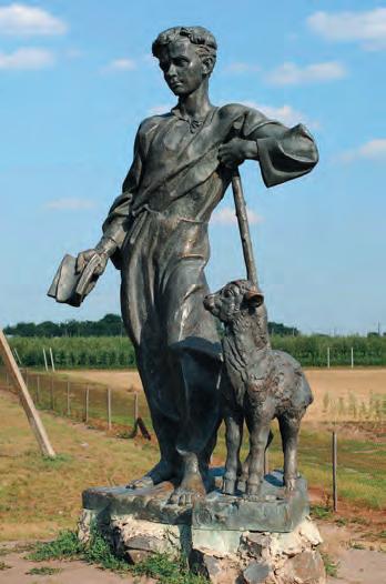 Неподалік — бронзова постать босоногого хлопця з торбиною на плечі і чобітками, почепленими на палицю. Цей пам’ятник юному Шевченку має назву «Тарас мандрує». Він є частиною скульптурного циклу «Шлях Тараса».