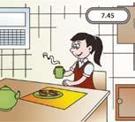B zu Hause: im Garten arbeiten, den Eltern helfen, Freunde treffen, mit dem Hund spielen, Federball spielen, Musik hören.
