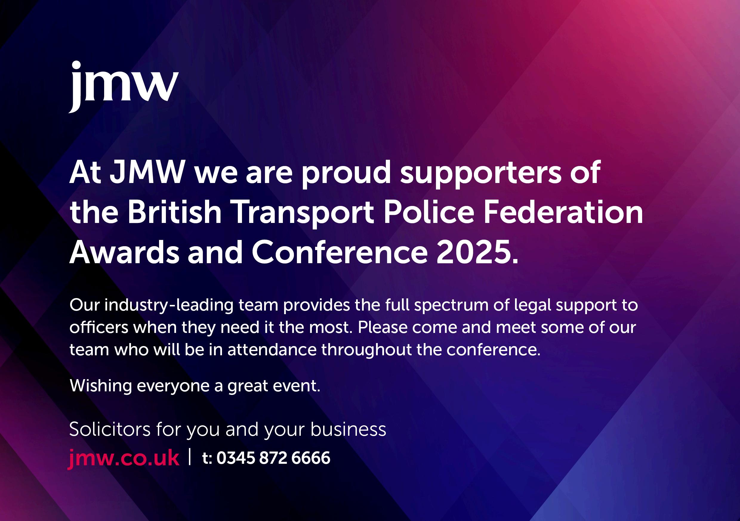 It is my pleasure to welcome Federation representatives from across the force area to the Hilton Utilita Bowl in Southampton for the British Transport Police Federation’s annual conference and Awards ofExcellence.
