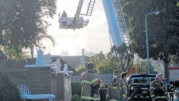 Dozens of firefighters and eight appliances including a ladder platform battled for an hour to control the blaze at Endeavour Crescent as shocked residents looked on.