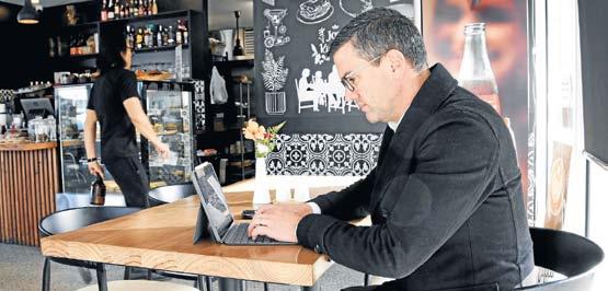 Day-to-day work life for Mr Battin can mean a lot of moving around, as he travels from cafes to community centres for meetings and admin work.