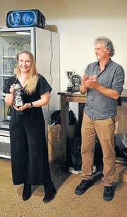 Cody Hirst with his well-earned silverware as the best player on the ground in the grand final.