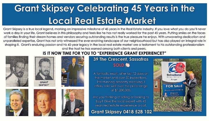 Local Property Sales Specialist ELIZA HOUGHTON Selling in the local area for the past 7 years. Find out what your property is worth in today’s market with a complimentary house appraisal. Looking forward to hearing from you soon. RT Edgar Yarra Valley ehoughton@rtedgar.com.au 0403 660 137 rtedgar.com.au 12586309-DL03-23 12496493-NG22-21 Ph: 5966 9999 YARRA RANGES GAS HEAT & COOL SPECIALISTS IN •SplitSystems •DuctedHeating andCooling •GasApplianceSales andInstallation 12339093-LB07-17 AU36010 12531467-SN03-22 We buy copper, brass, aluminium, etc . . . We Buy Steel Clancy Road, Mt Evelyn | www.evelynrecycling.com.au Tel: 9736 2853