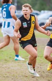The Men’s Reserves provided the nail-biter for the round. Healesville allowed WarburtonMillgrove to get the jump on them in the first quarter with five goals to zero. Healesville came back in the second quarter and kept Warburton-Millgrove goalless to reduce their lead to 19 points at half-time.