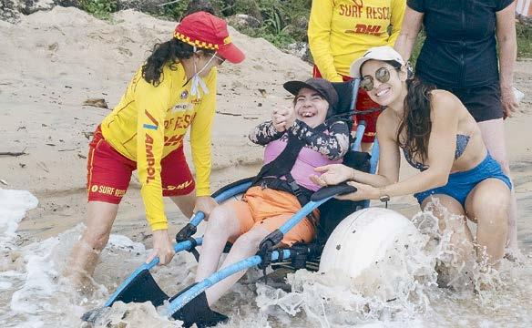 Forty-six participants and 87 supporters including 60 from Noosa took part in a series of beach events including a modified boot camp, obstacle course, wheelchair flags races and piggy back races.