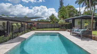 provides privacy while remaining visible from the kitchen, allowing you to keep an eye on children at play. Set on a generous 861sqm fully fenced block, the level grassed grounds are a true entertainer’s dream. Enjoy alfresco dining under the shade of mature trees on the spacious deck, or relax amidst the peaceful, low-maintenance blend of native and coastal gardens.