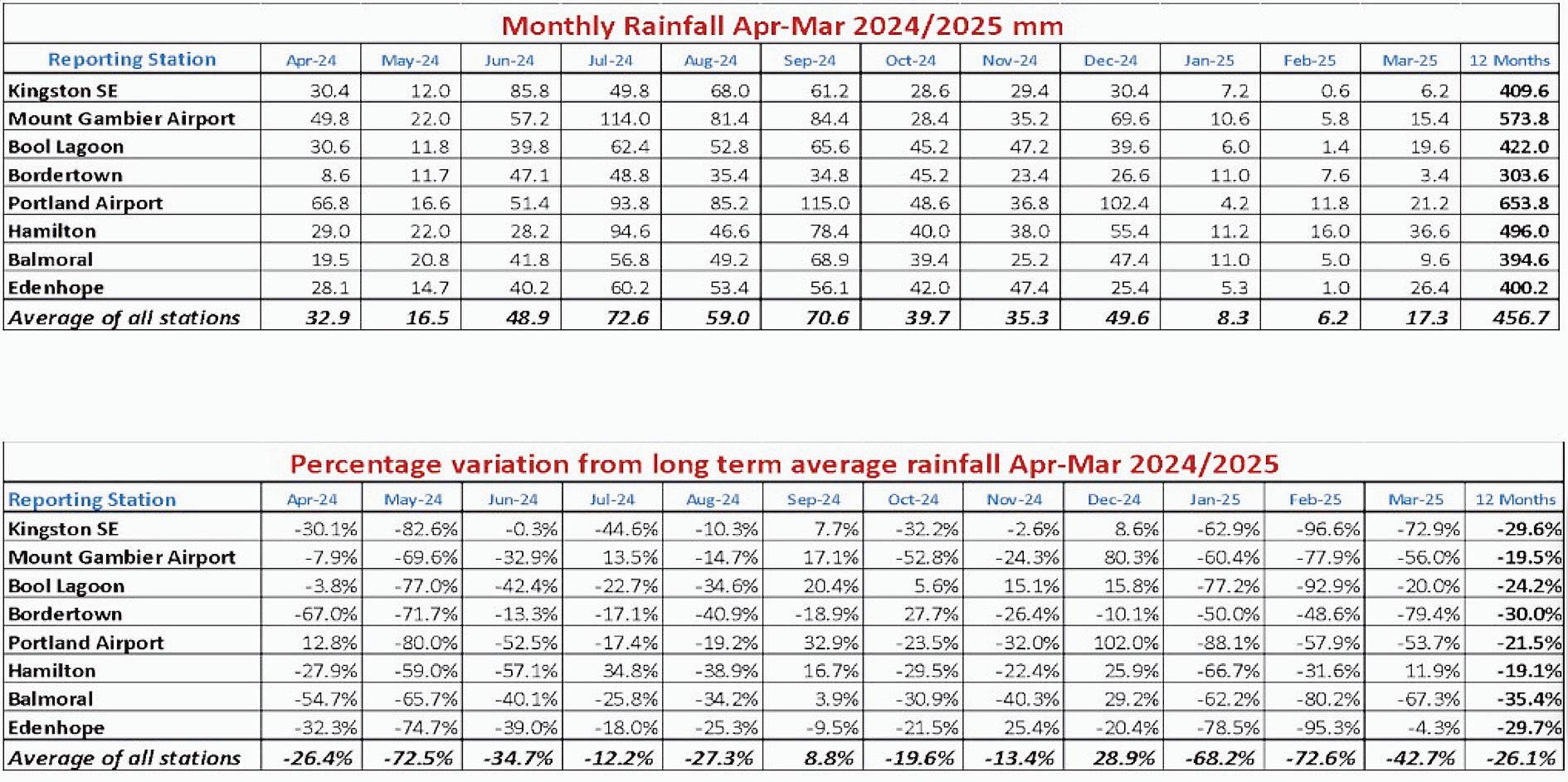 Across the area and over eight Bureau of Meteorology reporting stations, the average annual rainfall deficit was 26.1 per cent.