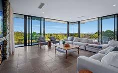 The light filled living zones are oriented to north facing floor to ceiling glass doors and windows to a huge alfresco dining / relaxion pavilion adjacent to the sparkling blue pool and showcasing those amazing views.