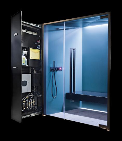 Die moderne Lösung kombiniert Dampfbad und Deckendusche für ganzheitliches Wohlbefinden: exklusiv, elegant und originell, mit individuell gestalteten Stilelementen und behaglichen Farben für ein rundum emotionales Erlebnis .