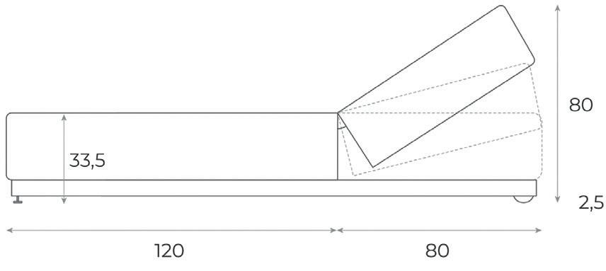 Die hochgezogene Rückenlehne eignet sich perfekt zum Entspannen während des Tages, während diese Chaiselongue, wenn sie vollständig heruntergeklappt ist, als echtes Bett verwendet werden kann.