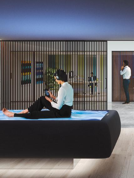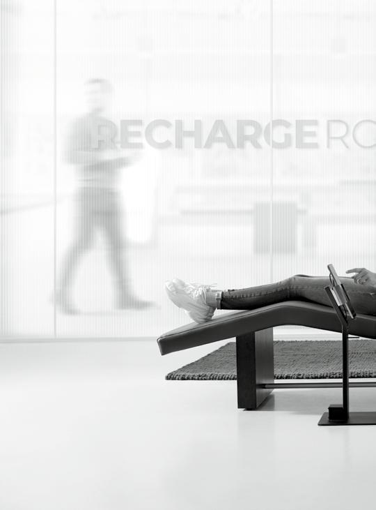 Im Entspannungsbereich finden Sie einen Recharge Room , der mit Unterstützung unserer Corporate Wellness-Experten konzipiert und realisiert wurde. Der Raum ist mit Zerobody ausgestattet und prädestiniert für eine Regenerationspause von bis zu 30 Minuten während des Arbeitstages.