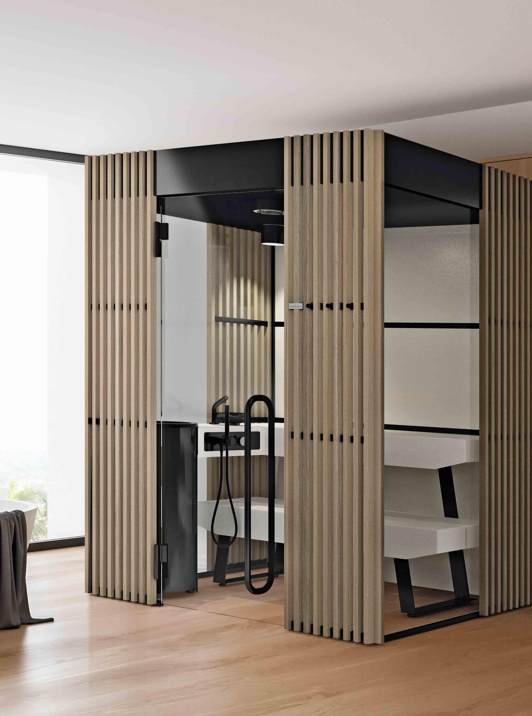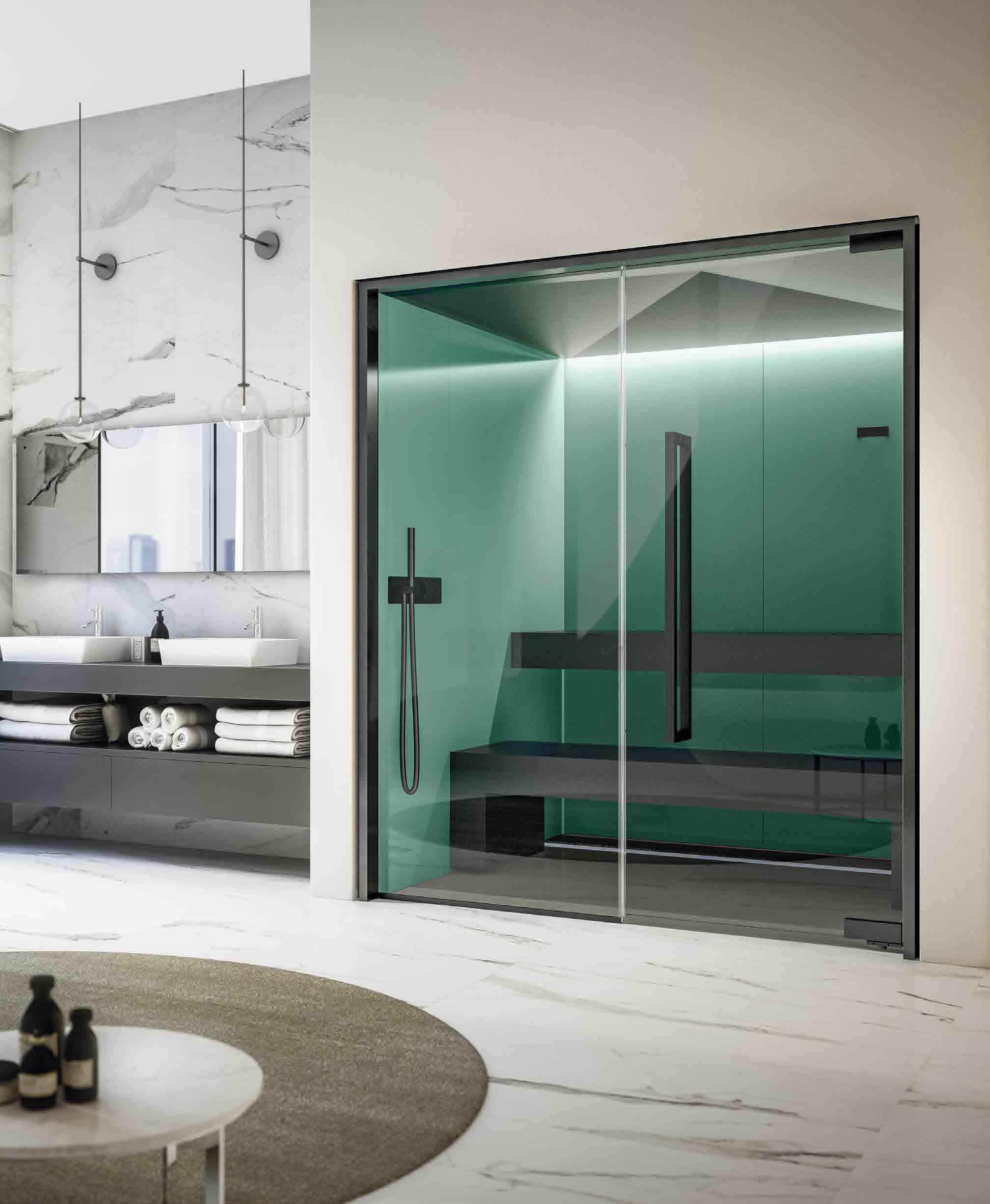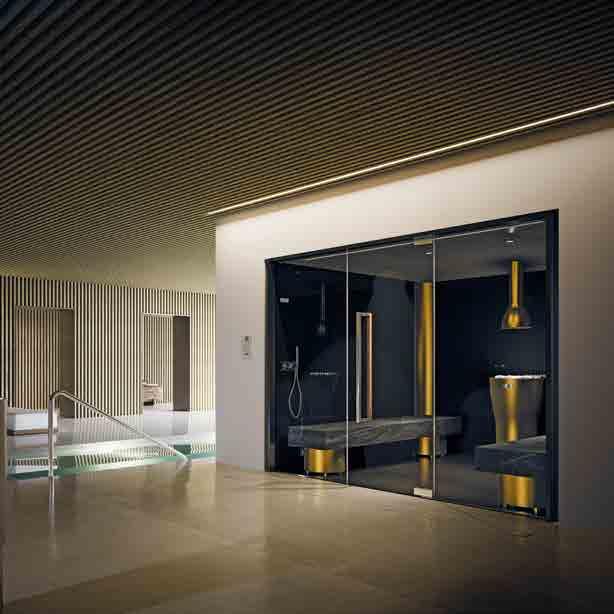 Die Dampfdusche verbindet in einer einzigartigen, eleganten und exklusiven Umgebung die feuchte und entspannende Wärme eines Dampfbades mit der regenerierenden Frische des Wassers.
