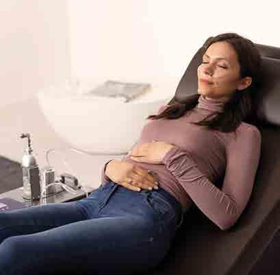 Die Infrarot-Therapie sorgt für ein tiefes Wohlbefinden dank der Wärme, die von der ergonomischen Rückenlehne durch spezielle Infrarotlampen ausgeht.