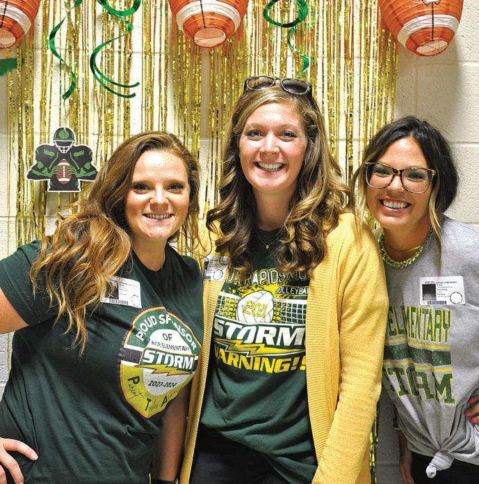 Green and gold came out in droves Sept. 15 as the Sauk Rapids-Rice School District celebrated homecoming week Sept. 11-15. The middle and high schools hosted pep fests Friday before the annual homecoming football game, and the Rice Elementary School Parent Teacher Association put on a tailgate party for students inside the school cafeteria during lunch. Members of the PTA handed out football, trinkets and treats as well as decorated the cafeteria, encouraging Storm pride and school spirit.