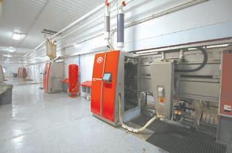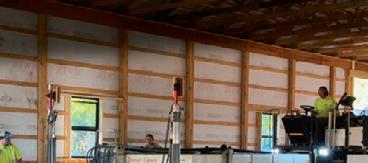 to fit a 45-foot trailer and semi-truck in two separate bays. Its customized tarp installation bay offers fast and safe job productivity accom-