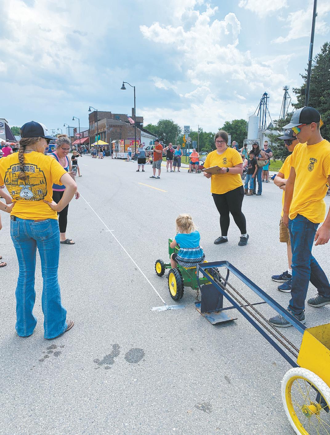 As if two tractorrelated activities were not enough, the chapter also puts together a children’s pedal pull contest during Holdingford Daze. The officer team helps with various tasks during the pedal pull — signing kids up, measuring the distance traveled, returning the sled to the start line and helping the kids along the way. The top three children of each age group are also awarded