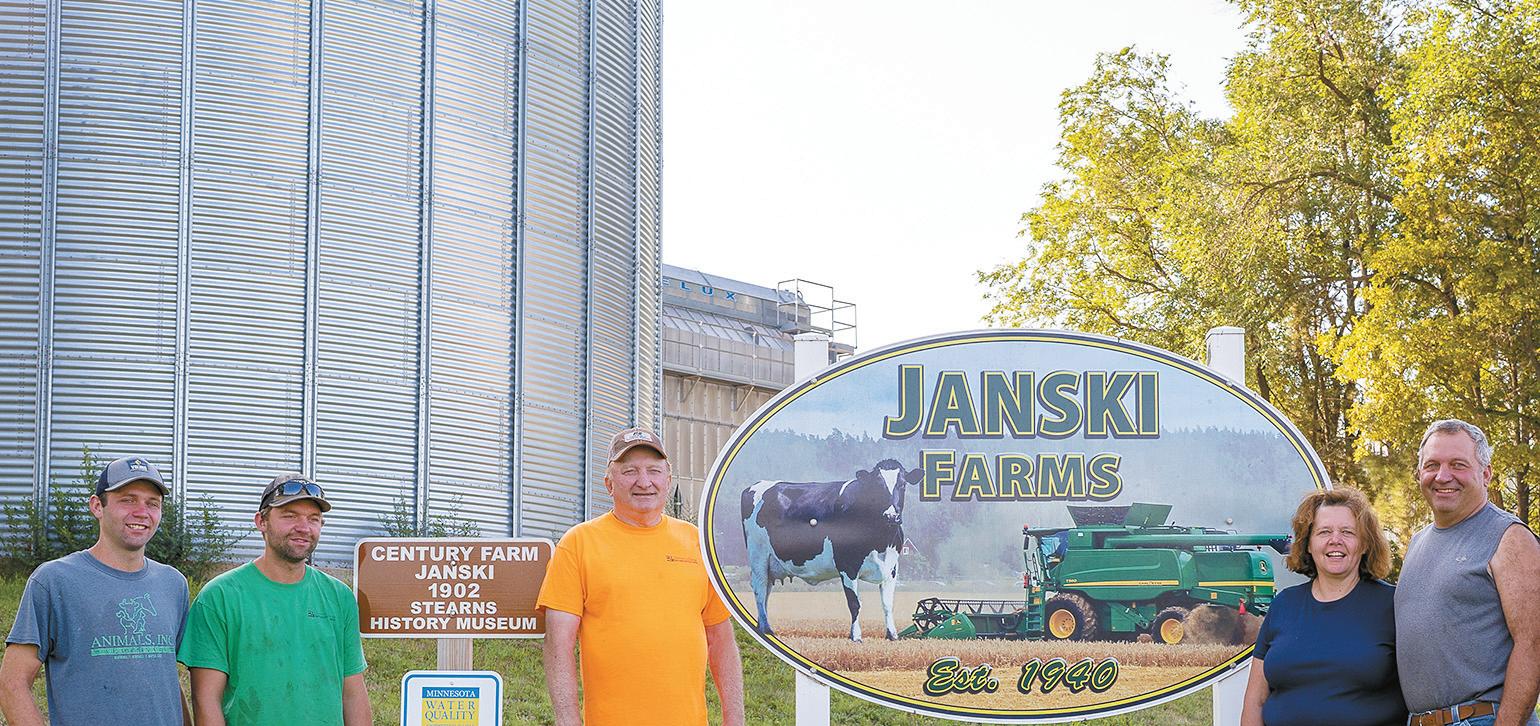 Daniel (from left), Thomas, Robert, Marlys, and Richard Janski gather at their family’s farm. The family was recently named the Stearns County Farm Family of the Year.