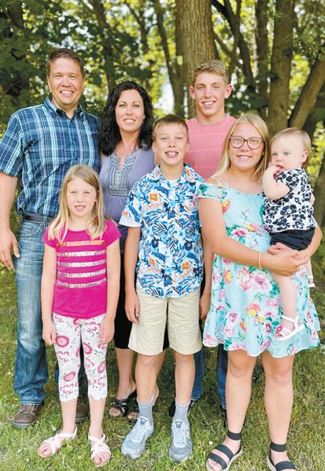 The Beyer family was named this year’s Swift County Farm Family of the Year. Julia (front, from left), Sam, Cora and Lauren Beyer; (back, from left) John, Heidi and Thomas Beyer work together to run Beyer Farm.