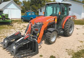 FARM TRACTORS & MACHINERY: 2021 Massey Ferguson 2860M Tractor, MFD, Massey Ferguson FL2814 Loader w/Front Aux. Hyd., w/Bucket, Cab, Heat, Air, 1 Hyd., 3pt, PTO, 203 Hours, Hydro Trans., (5) Dump Wagons w/Hyd. Hoist & JD Gears, Loaded w/Cut (hardwood)