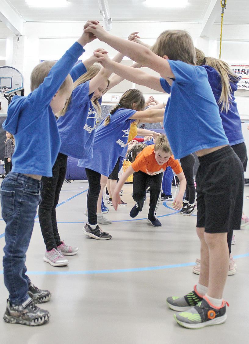 Preschool, second and third grade students learn an American folk dance in May at Ridgeway Community School near the village of Ridgeway. The event was possible because of a residency with American folk dance artist, Sue Hulsether.