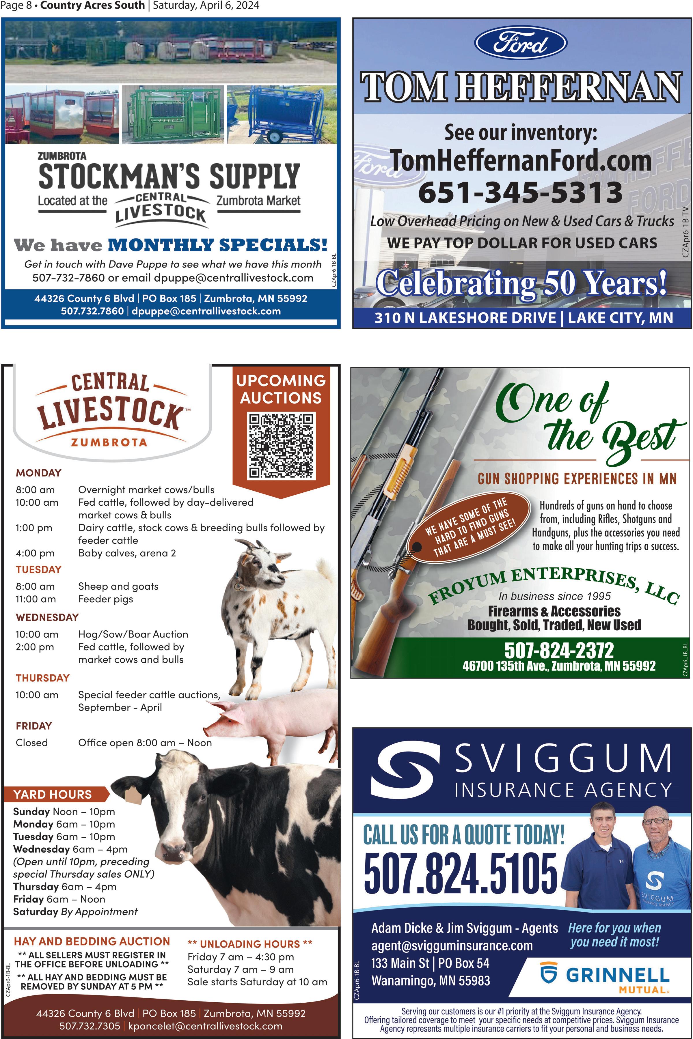 Saturday, August 10th @ 8:30 am (live and online) Pre Harvest Area Farmers Consignment Auction (advertising deadline July 9th); Accepting consignments July 30th - August 7th (Maring)