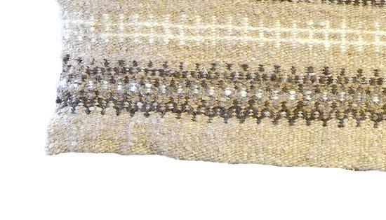Some of Ellison’s pieces feature the natural colors of the wool from her own farm. Other pieces, such as her krokbragd weaving, use purchased wool.