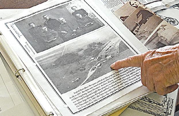 Yvonne Krogstad points out details on family history documents July 12 at her home near Spring Grove. The Berquam-Krogstad Family Farm was recently recognized as a Century Farm by the Minnesota Farm Bureau, although the farm is about 169 years old.
