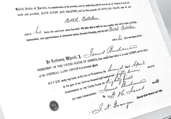 President James Buchanan’s signature appears on a copy of a land document resting July 12 at Yvonne Krogstad’s farm near Spring Grove. Over the years, the farm has raised corn, oats, alfalfa, dairy cows, beef cattle, hogs and chickens.