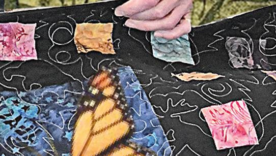 (Right) This quilt by Sandra Borgschatz features butterflies and a farm in the distance. The quilt judging certification process that Borgschatz is going through requires submitted paperwork and presenting before a panel of judges.