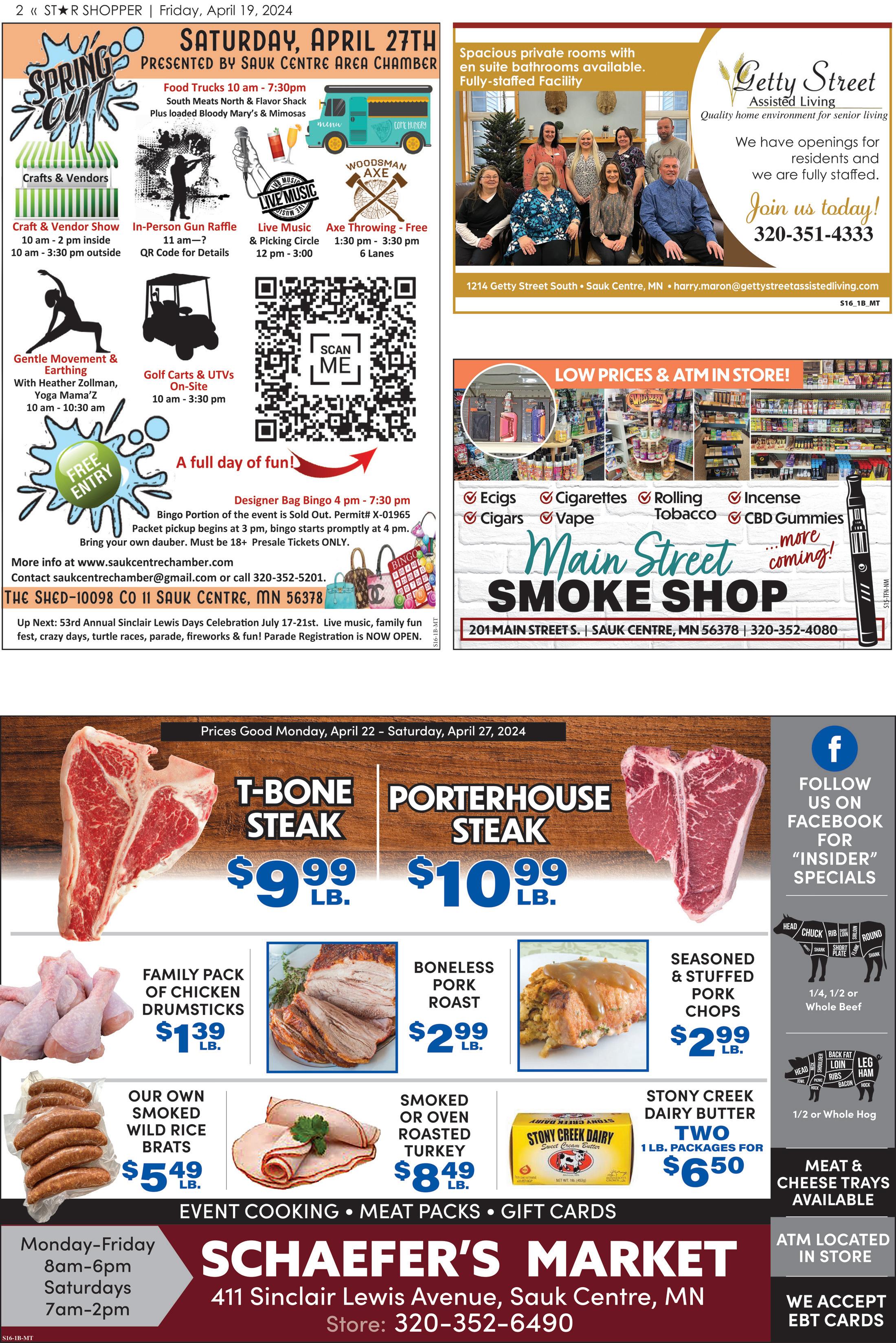 12 « STR SHOPPER | Friday, April 19, 2024 OF LONG PRAIRIE 19612 US Hwy. 71 • PO Box 270 Long Prairie, MN 56347 320.732.3715 • 866-514-0982 dean.schreiner@farmriteequip.com www.farmriteequip.com Sales • Service • Parts • Rental Answer the ad question correctly and enter to win a $50 Gift Card From: Winner: Answer: Next Door Bar Nate Toren, Alexandria St. Joseph, MN Gift Card Registration Name________________________________________ Address______________________________________ City, State, Zip_________________________________ Phone #______________________________________ E-mail: _______________________________________ Drawings done weekly Wednesday mornings at 10:00 a.m. Drop off or mail to the Sauk Centre Herald 522 Sinclair Lewis Avenue • Sauk Centre, MN 56378 Q. A. Can you find the bratwurst? Name the ad it is hiding in Must look identical to this Drop off registrations at Star Post 408 East Main Street Melrose, MN Star Post 561 Railroad Avenue Albany, MN Spiritz Liquor 225 E Kraft Drive • Melrose, MN St. Joe Meat Market 26 NW 1st Ave., St. Joseph, MN This form is due Wed., April 24, 2024 by 10 a.m. Limit One Entry per Customer. Must be 18 years of age or older to enter. MEAT Giveaway GREAT MINNESOTA TRAILER OPERATIONS WE ARE HIRING 20 WELDERS & ASSEMBLERS 320 746 2255 polartank.com APPLY ONLINE AT EntransInternational.com/CareersMTO Windsor Whisky Reg., Apple & Cherry 1.75 L. Gin & Juice Variety 8 pk. cans Trail Magic THC Sparkling Beverages 12 pk. cans Sutter Home All varieties • 4 pks. Smokiez THC Gummies Tres Agaves Mixes Butterfly Cannon Tequila All varieties Grain Belt Blu 12 pk. cans Modelo Especial 24 pk. cans agic kling ges ans ixes 1 L M Es 24 320-256-6300 Melrose, MN www.spiritzliquor.com REGULAR HOURS: Mon. - Sat. 8 am - 10 p.m. • Sun. 11 am - 6 pm Sale prices good while supplies last. Sale dates: Friday, April 19 - Sunday, April 28, 2024 Bud, Bud Light & Michelob Golden 15 pk., 16 oz. alum. Effen Vodka All Varieties 750 ml. Butte Cann Tequ varie Sm MON. - FRI. 11 am - 1 am | SAT. 9 am - 1 am | SUN. 2 pm - 8 pm EVERY WEDNESDAY DOWNTOWN POKER WALK Sinclair Lewis Ave, Sauk Centre, MN | 320-351-9951 THURSDAY, APRIL 25, 7:30 PM - TRIVIA Saturday, April 20 A B S O L U T E Z E R O ABSOLUTE ZERO Saturday, April 27 R U N N I N G 2 FA S T RUNNING FAST WELL DRILLING & WELL SERVICE WORK New Wells • Rehab of Existing Wells Sealing of Abandoned Wells (320) 836-2597 Family-Owned & operated for 78 Years ben@atkinsonwell.com • www.atkinsonwell.com 320-845-2831 Pelican Lake Ball Ballroom room Register for a FREE Chicken Dinner Drop Off or Mail in: Pelican Lake Ballroom 18419 County Road 154 Avon, MN 56310 St. Anna, MN Name Address Phone Number Call for take out orders! S1-tfn-TV MEATS & GROCERIES M-Th. 6-6 • Fri. 6-7 • Sat. 6-5 • Sun. Closed 320-363-4913 • www.stjosephmeatmarket.com Let’s Get Let’s Get Let’s 26 NW 1st Ave., St. Joseph, MN Downtown St. Joseph 30¢ Off Per Package Grillin! Smoked Cheddar cheese BRAT OF BRAT THE WEEK 1163 Getty Street South, Sauk Centre, MN 320-352-3791 | fandwexhaust.com YOUR CUSTOM DUAL EXHAUST HEADQUARTERS EXHAUST HEADQUARTERS