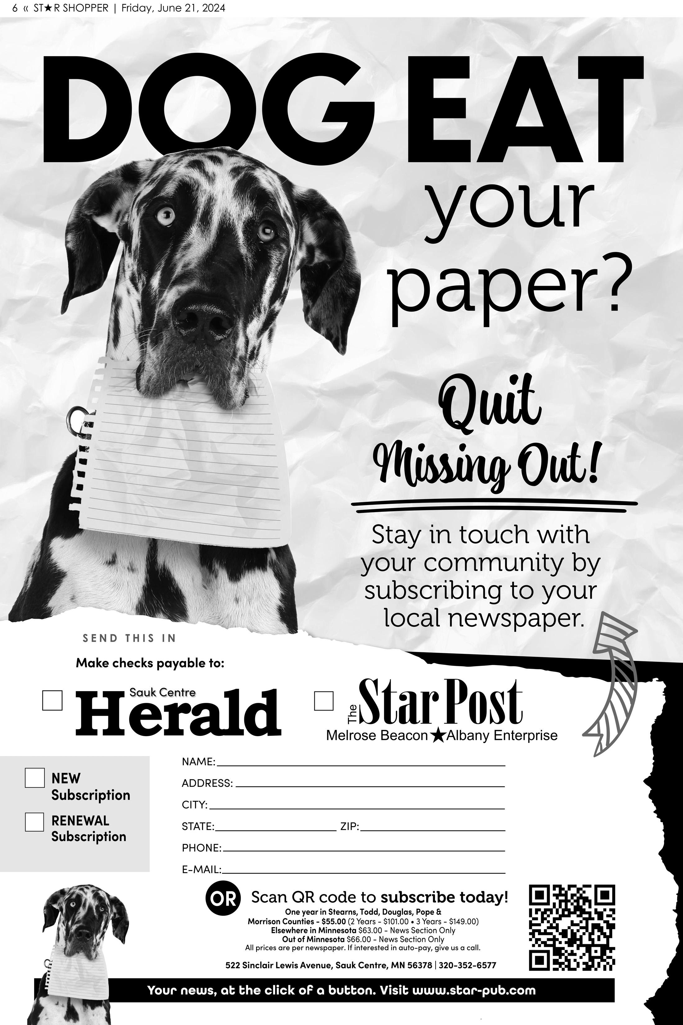 14 « STR SHOPPER | Friday, June 21, 2024 Herald Sauk Centre We them allprint Business Cards | Stationery | Marketing Materials | Labels | Stickers | Folders | Promotional Products Banners | Decals | Signage | Badges | Stamps | Graduation Banners | Note Pads | Multi Part Forms Mouse Pads | Feed Tags | Direct Mailers | And More! $0.49*Starting at * Prices depend on paper weight, size and color. Published by: ST R Publications 320-352-6577 522 Sinclair Lewis Ave, Sauk Centre, MN 56378 HI-SPEED INTERNET, ANYWHERE! Shop With A Viasat Expert