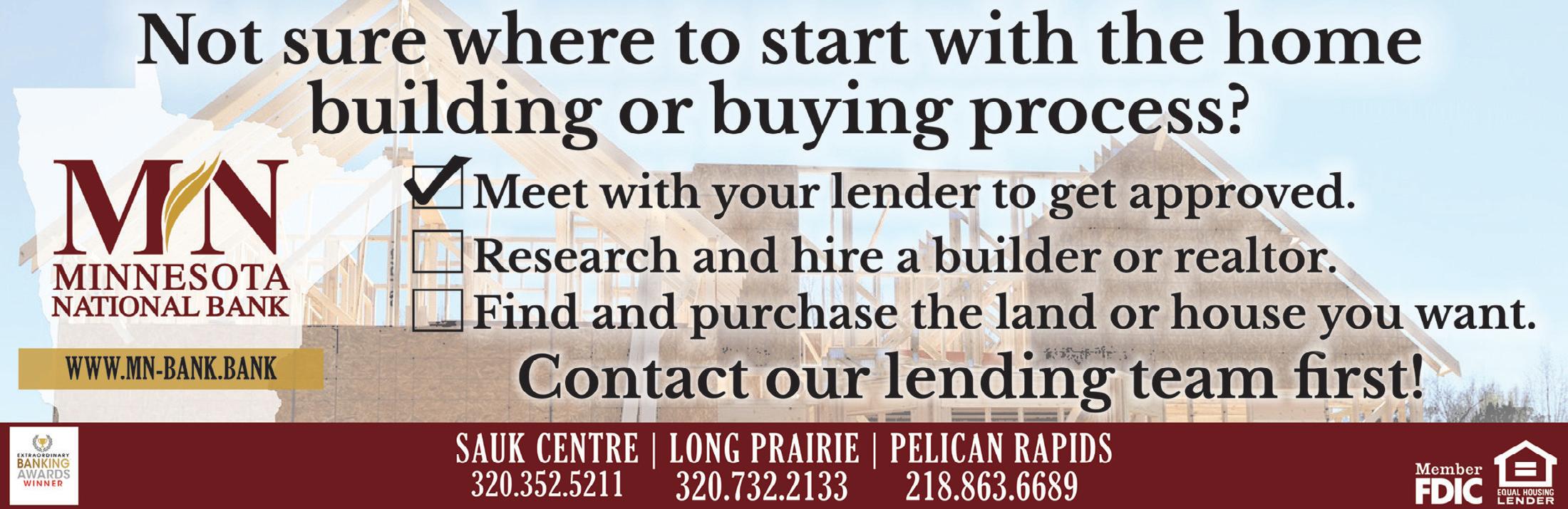 Minnesota National Bank 131 12th St., S., Sauk Centre 320-352-5211 mn-bank.bank