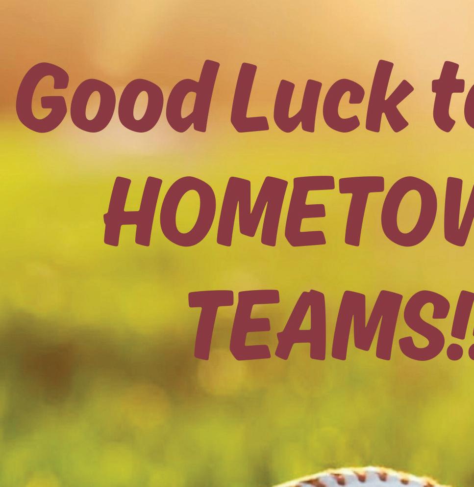 Contact us today for a friendly agent near you. Good Luck Teams! 320-256-7290 • 303 Main Street East • Melrose, MN www.melrosemutual.com MUTUAL ELROSE INSURANCE COMPANY Call Worms Lumber & Ready Mix for your lumber & concrete needs. When you need it, where you need it! New Munich 320-837-5288 Sauk Centre 320-352-2841 Long Prairie 320-732-6452 WWW.WORMSREADYMIX.COM ntre LongPrairie