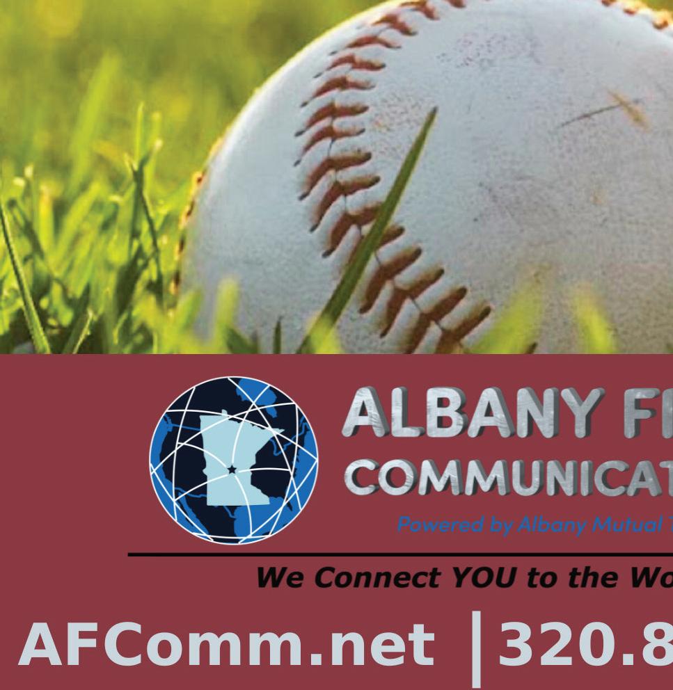 April 17, 2024 Page 24 | Amateur Baseball CallforaFREE homeevaluation. WWW.CENTRALMNREALTY.COM LOCALLY AND FAMILY OWNED Alexandria, St. Cloud, Albany, Melrose, Sauk Centre, Long Prairie, Cold Spring, Spicer, Paynesville, Brainerd, Holdingford, Glenwood, Monticello and Wadena Your Baseball Friendly Realtors 70+ Agents with offices in: Matt Imdieke 320.420.1295 Jacob Imdieke 320.491.7157