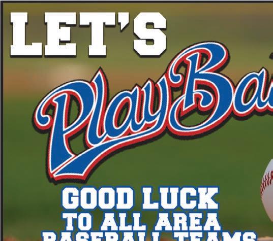 Pitching IP R ER H K BB HB W L S ERA Ashton Dingmann 18.0 2 2 11 10 2 0 2 0 0 1.00 Ethan Vogt 75.2 17 10 60 64 10 0 7 1 1 1.19 Jackson Peter 1.1 3 2 0 1 3 0 0 0 0 13.50 Payton Van Beck 45.0 9 6 23 62 15 0 6 1 0 1.20 Riley Lenarz 0.2 0 0 1 0 1 0 0 0 0 0.00 Riley Meyer 21.1 9 7 12 14 13 4 1 0 0 2.95 Will Van Beck 29.0 6 6 15 20 1 0 3 1 4 1.86 Wyatt Steffensen 18.0 17 14 19 12 14 0 1 2 1 7.00 Totals 209.0 63 47 141 183 59 4 20 5 6 2.02 PHOTO BY HERMAN LENSING Derek Wiener comes through with timely hits for the Saints. He consistently hit with runners on last season, driving in 19 runs. Good Luck Elrosa Baseball Club www.elrosasaints.com Located 10 Mi. No. of Brooten on Co. Rd 18 or 7 Mi. So. of Sauk Centre on Hwy. 71, then 5 Mi. W. on Co. R. 22. 320-352-2683 Stop in for good food and a cold one! PADUA PUB • General Contractors • Design/Build • Construction Management Elrosa, MN good luck luck AREA TEAMS 320-697-5525 www.bcc-mn.com PO Box 400 • Brooten, MN 56316 320-346-2234 • 866-346-2234 (Fax) 320-346-2237 • www.bvsb.bank Since 1894 BONANZA VALLEY STATE BANK Good Luck Teams!