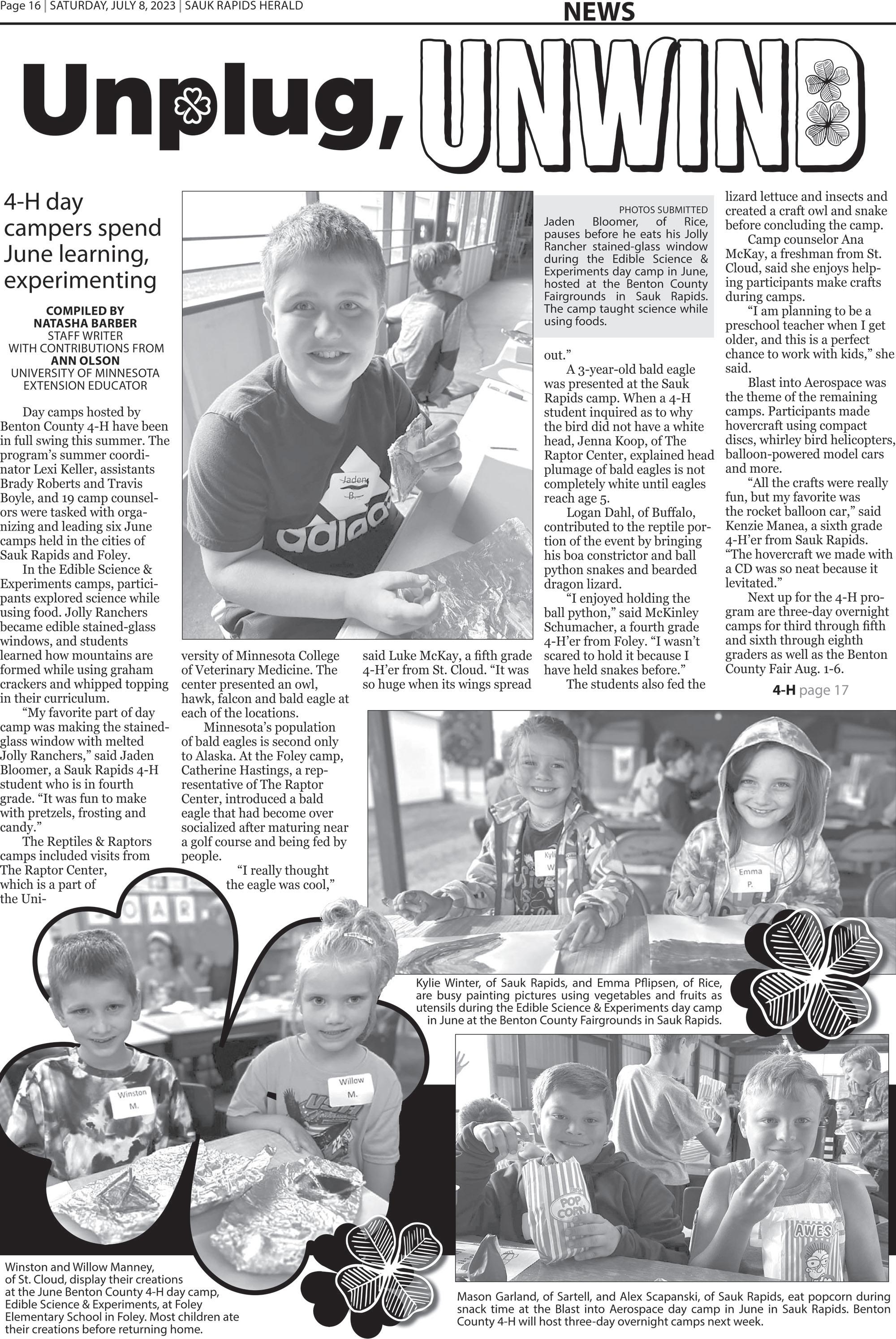 St. Cloud and Sauk Rapids area parks lled in the afternoon and evening hours as people prepared to watch the annual St. Cloud Area July 4th Fireworks display, held from the Mississippi River. Hours earlier and north near Rice, people took to the waters and shores of Little Rock Lake to participate in the lake’s annual Fourth of July boat parade.