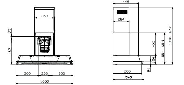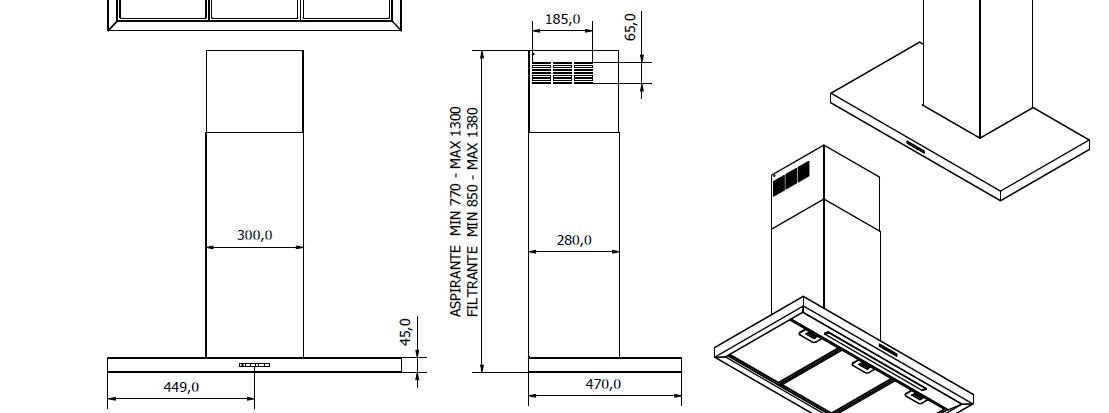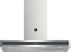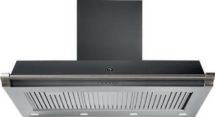 Geïnspireerd op de professionele industrie: Professioneel en toch discreet ontworpen; de voorzijde en de vetfilters van de wandschouwkap zijn net als het fornuis schuin geplaatst; professionele labyrintfilters; 900m3/h vermogen