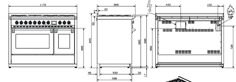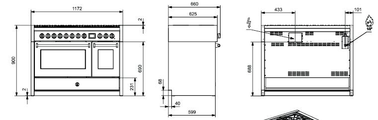 (beschikbaar voor fornuizen van 90 cm en 120 cm breed en de inbouwovens van 90 cm breed)