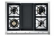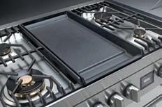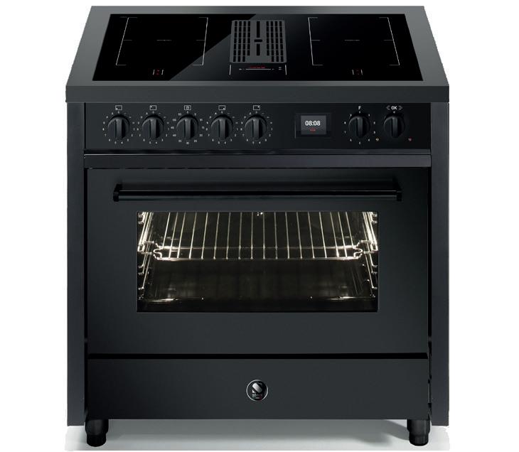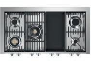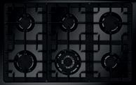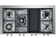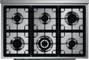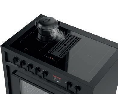Gemakkelijk koken: De inductiekookplaat, evenals de mat geëmailleerde gietijzeren pannenroosters van de gaskookplaat, bevinden zich op dezelfde hoogte als het keuken werkblad. Dit zorgt ervoor dat pannen gemakkelijk van kookzone verplaatst kunnen worden zonder ze op te tillen, en geeft een stabiele basis tijdens het koken.