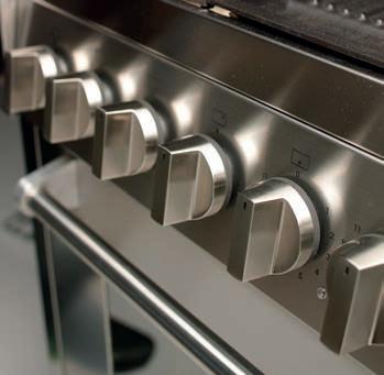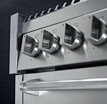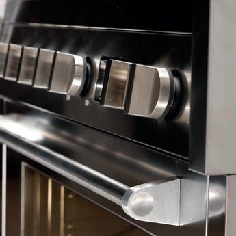 Professionele traditie: Massief stalen bedieningsknoppen voor een perfecte grip, voorzien van mat zwarte detaillering aan de zijkant. De kern van de knop is hittenbestendig en gemaakt van bakeliet.