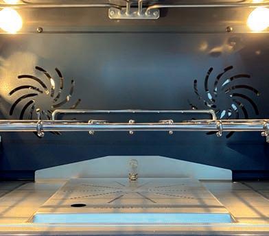 Ons gepatenteerde INNVENT-systeem is voorzien van dubbele ventilatoren die in een omgekeerde rotatie draaien en de warme lucht gelijkmatig verdelen door de ovenruimte, niet alleen verticaal maar ook horizontaal op elk niveau. Hierdoor is onberispelijk en homogeen bereiden mogelijk. De ovendeur kan gedurende de gehele bereidingstijd gesloten blijven, zodat de bakplaat niet halverwege de bereiding verplaatst dient te worden.
