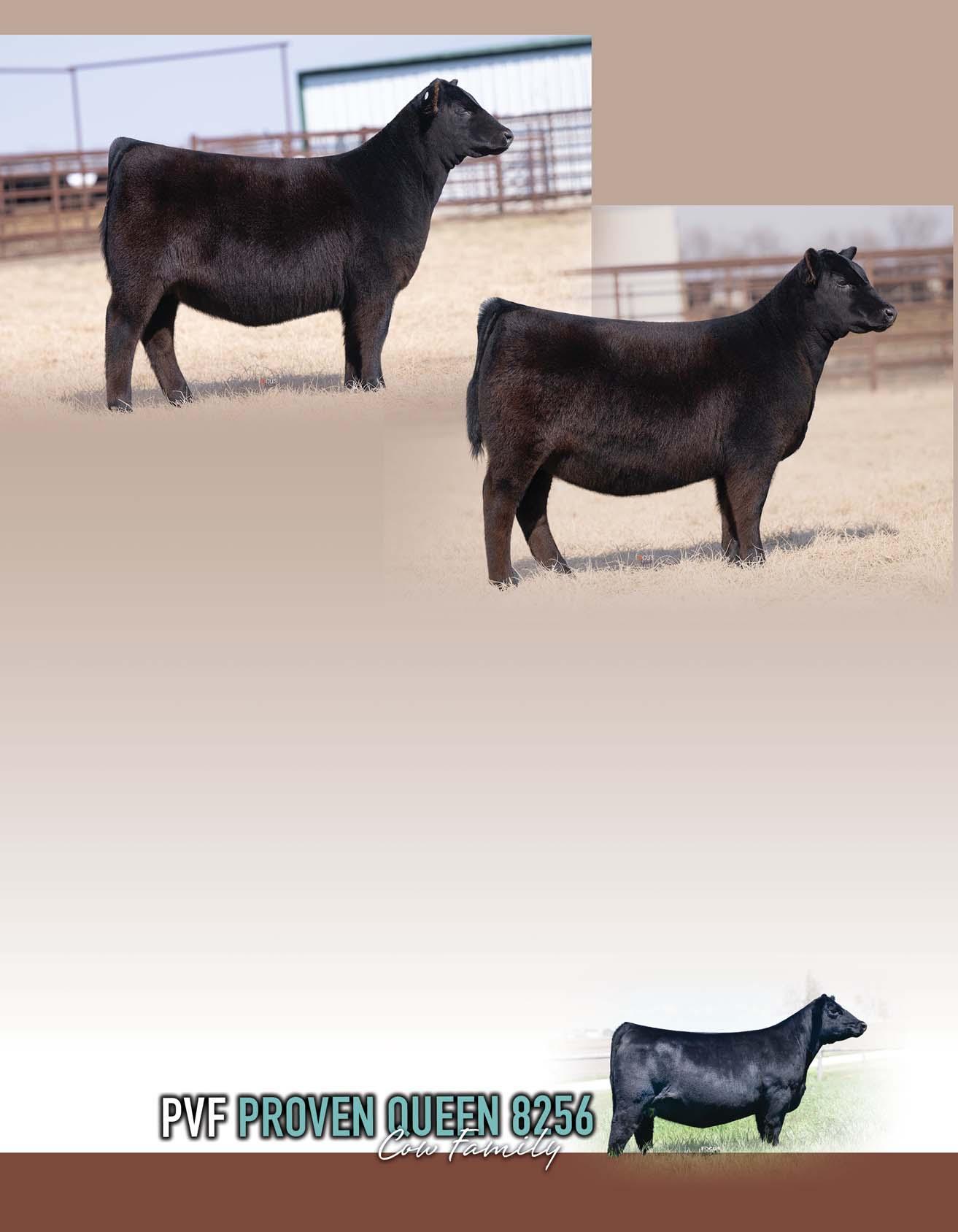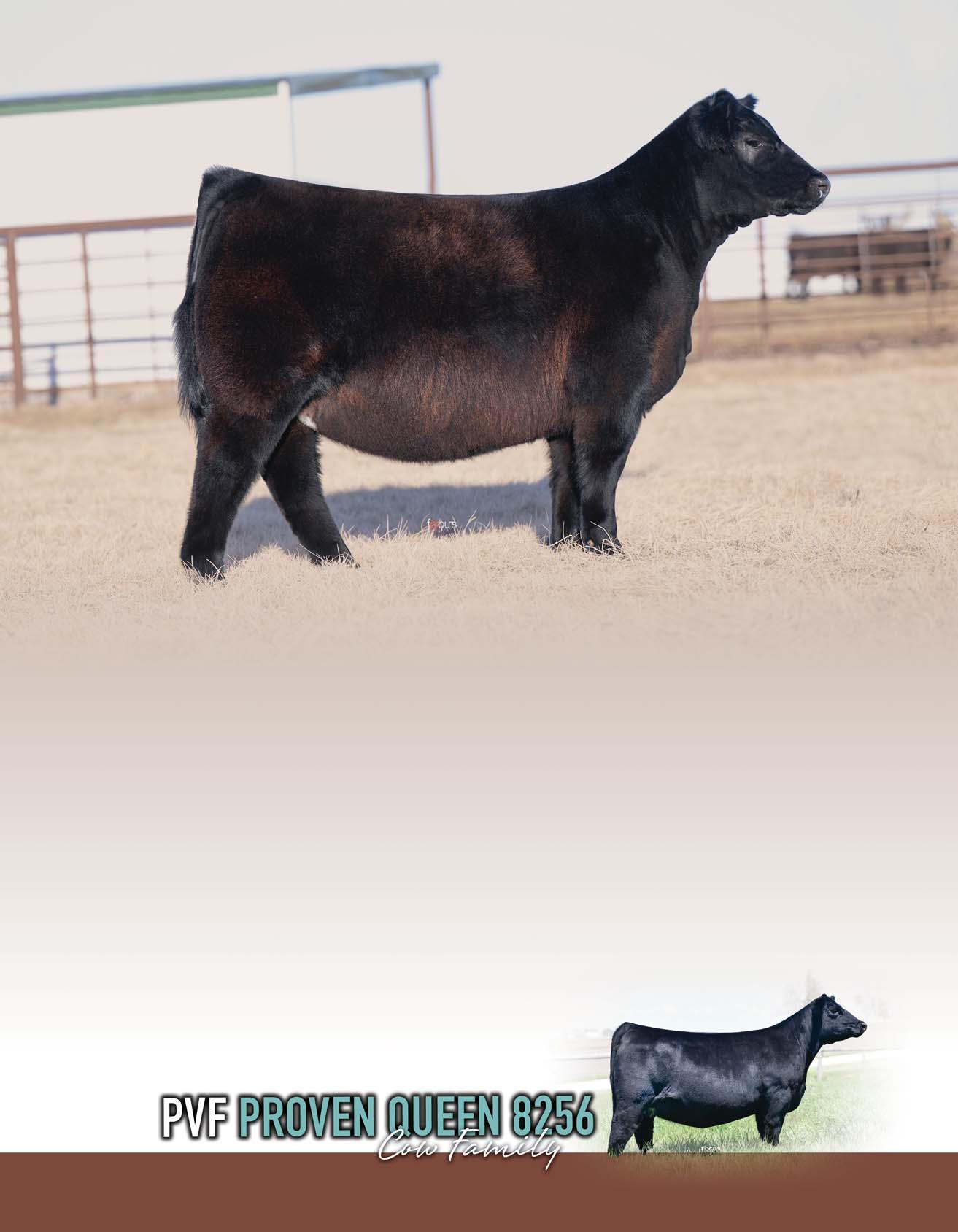 This heifer’s dam, PVF Proven Queen 8256, produced Lots 1-6 in our Fall PVF Production Sale that averaged $64,000. 8256 herself was shown successfully by Cameron Choate, including the Reserve Grand Champion of the North American International Livestock Exhibition, and was a division winner at the National Junior Angus Show. This female is a line bred Insight from the Proven Queen cow family and offers unmatched stoutness and power coupled with a show ring style that racked up numerous banners. 8256, as well as her four Proven Queen dams across the bottom of her pedigree were all National Junior Angus Show division winners.