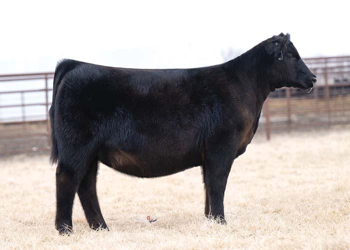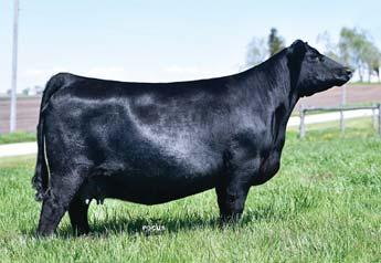 PVF Blackbird 2201, this Third Overall Heifer at the Illinois Junior Angus Field Day for Amelia is the dam of Lots 1-3 .