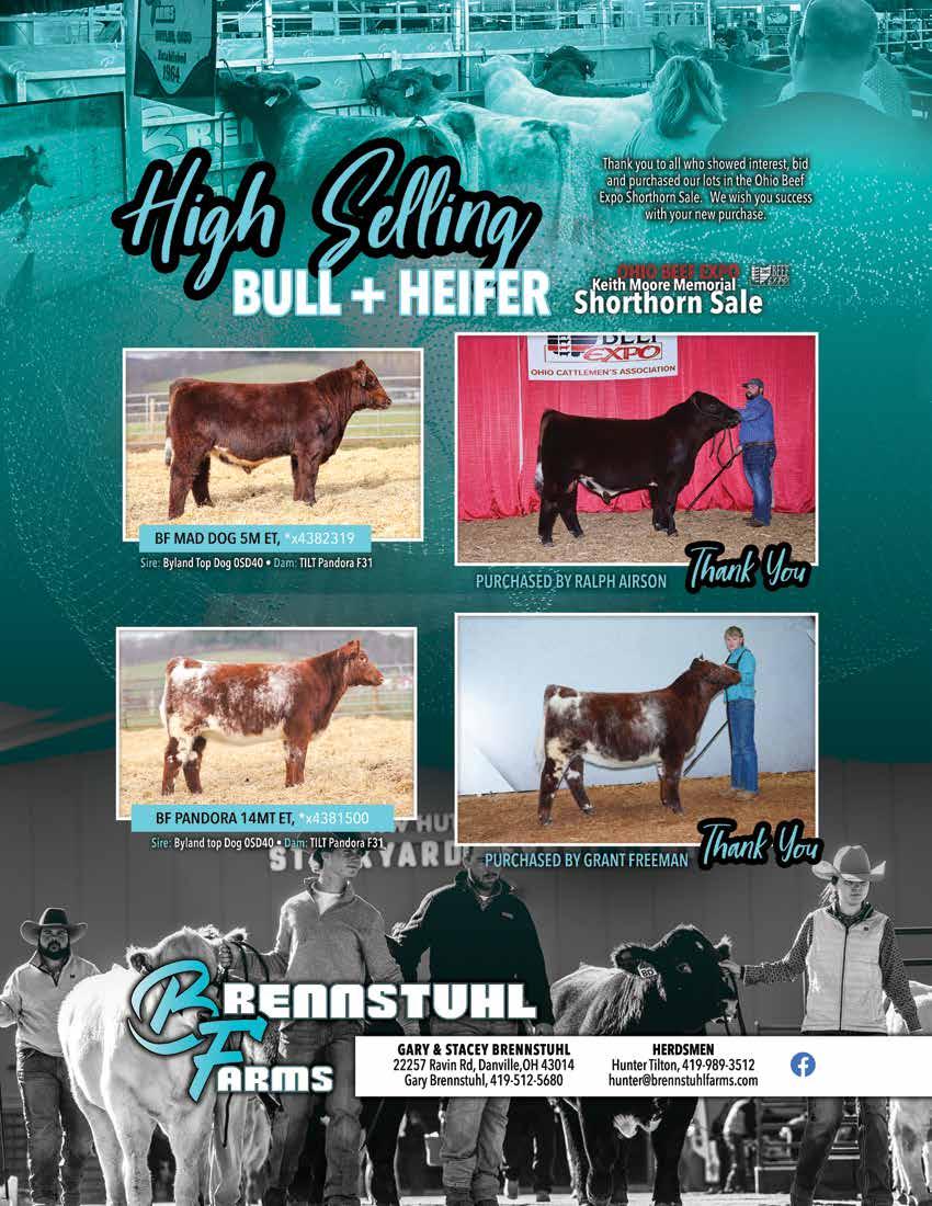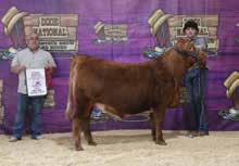 her style and balance, but her pedigree is really impressive. Sired by a full brother to the current National Champion Bull from Denver and out of the great Bo’s Traveling cow line. A future donor. Offered by Maddox Reedy and purchased by Meyer Family Shorthorns of Greensburg, Indiana.
