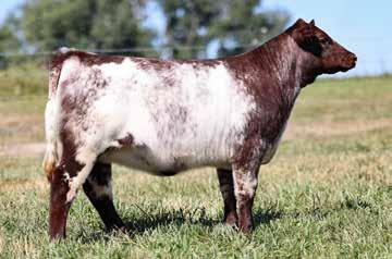 Palermo x Marquis 86G is one to build a foundation on. These PVF Palermo daughters are practical as you make one. Calving ease at its best with growth, look, and cow power. Brock’s bred and owned this year, sired by him, has done very well in all these categories and in the show ring. This is a solid heifer with a lot of future. As we always say, don’t let the purple shampoo scare you away on these white ones. Consigned by STUDER SHORTHORNS