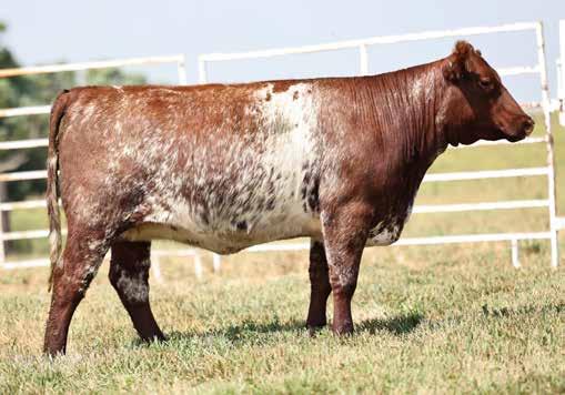 A moderate framed Ember daughter that has a sweet little dark roan heifer calf that is sure to turn some heads.